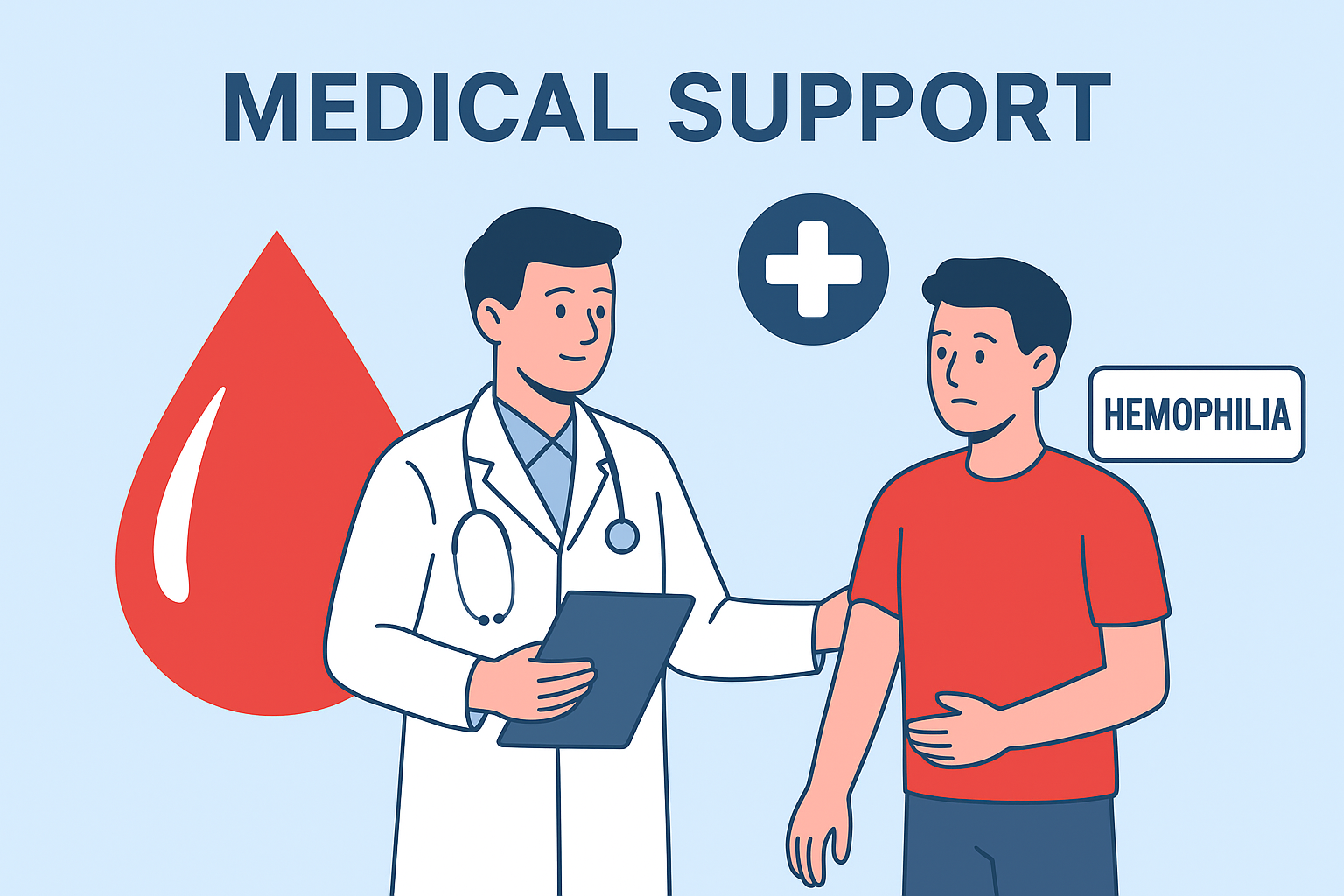 Medical Support – Facilitating access to diagnosis, factor concentrates, and emergency care for patients.