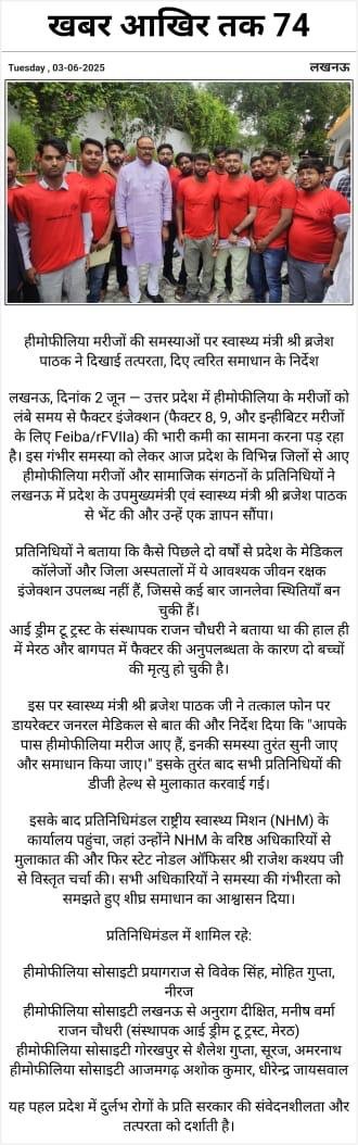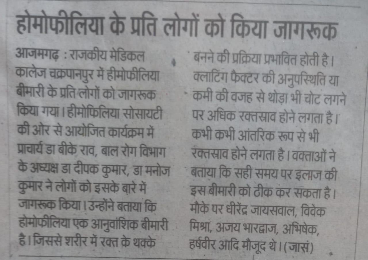 raising awareness about hemophilia and other bleeding disorders. At Hemophilia Society Azamgarh,