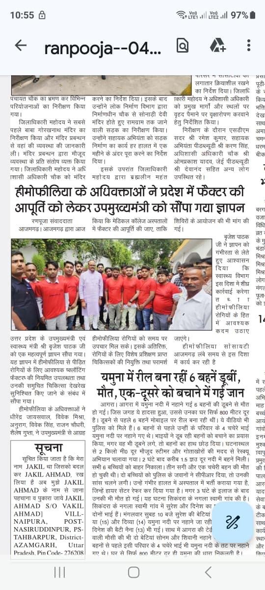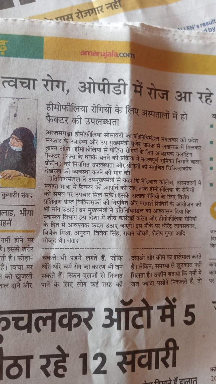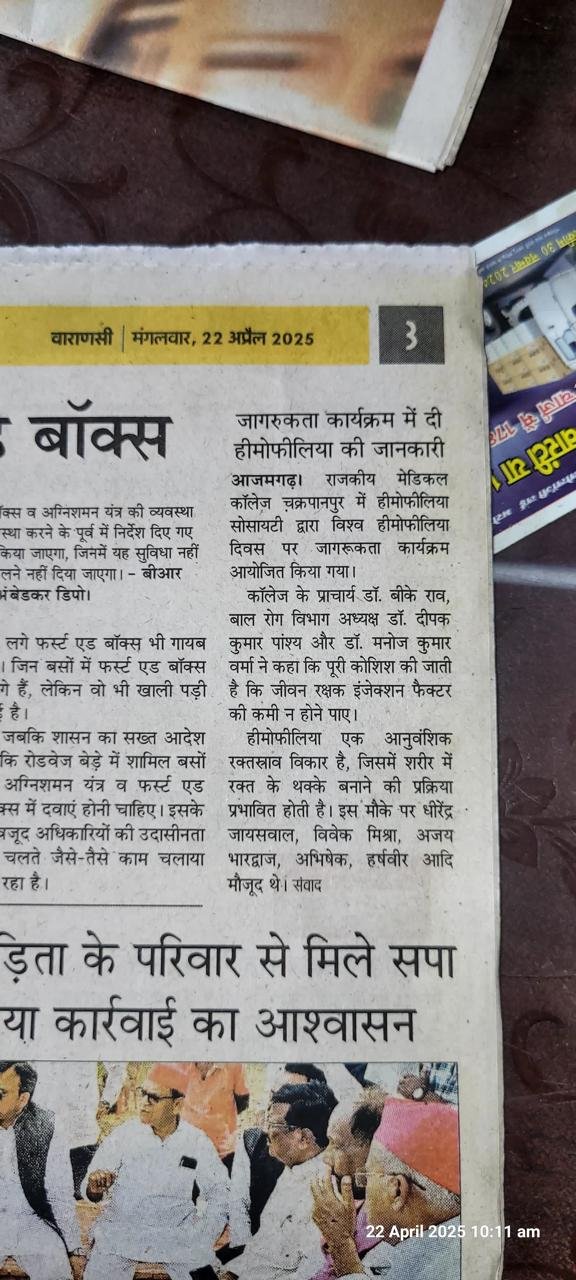 raising awareness about hemophilia and other bleeding disorders. At Hemophilia Society Azamgarh,